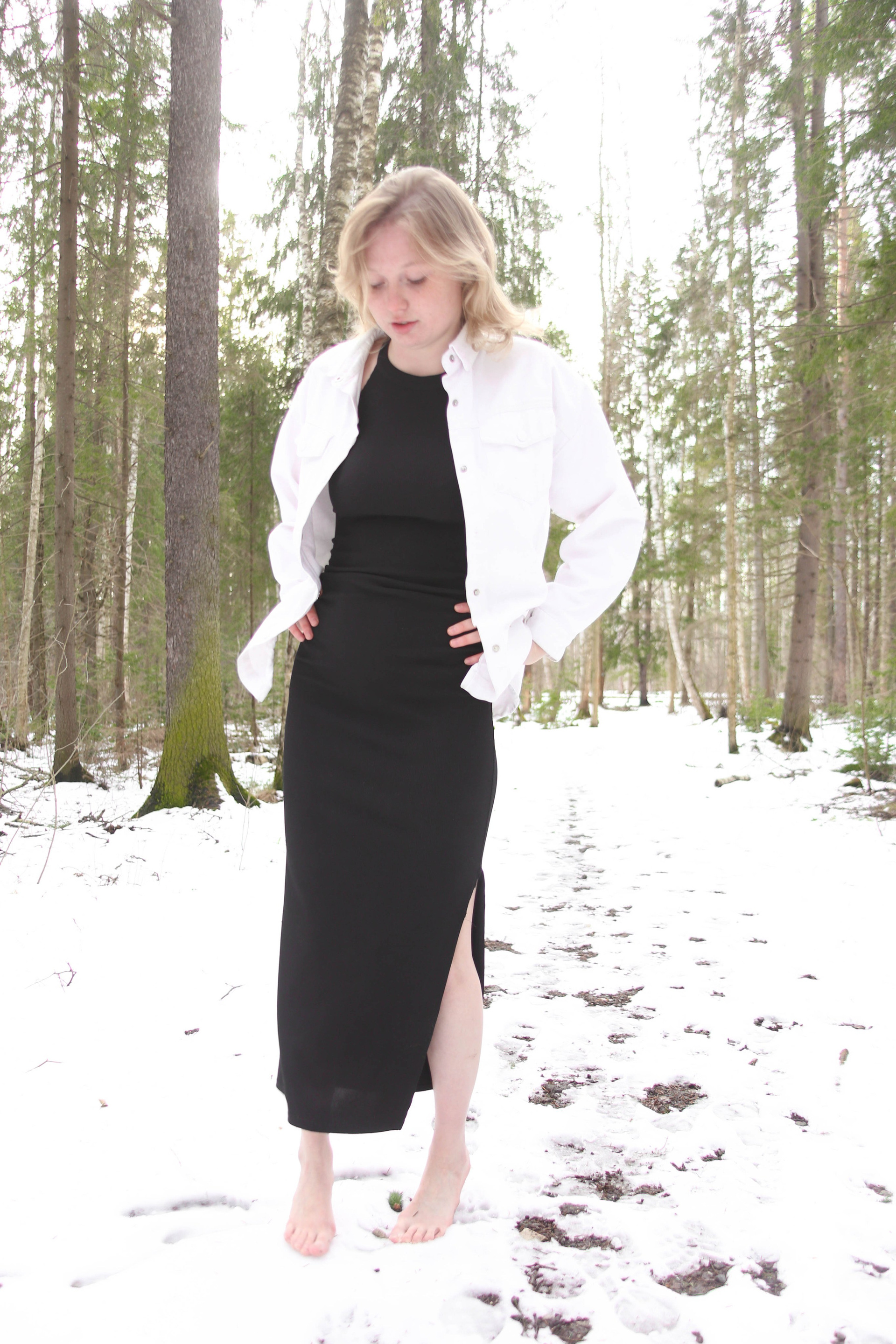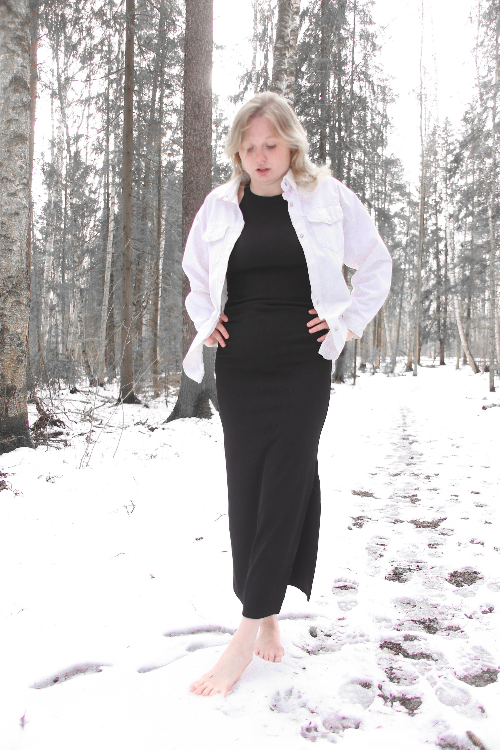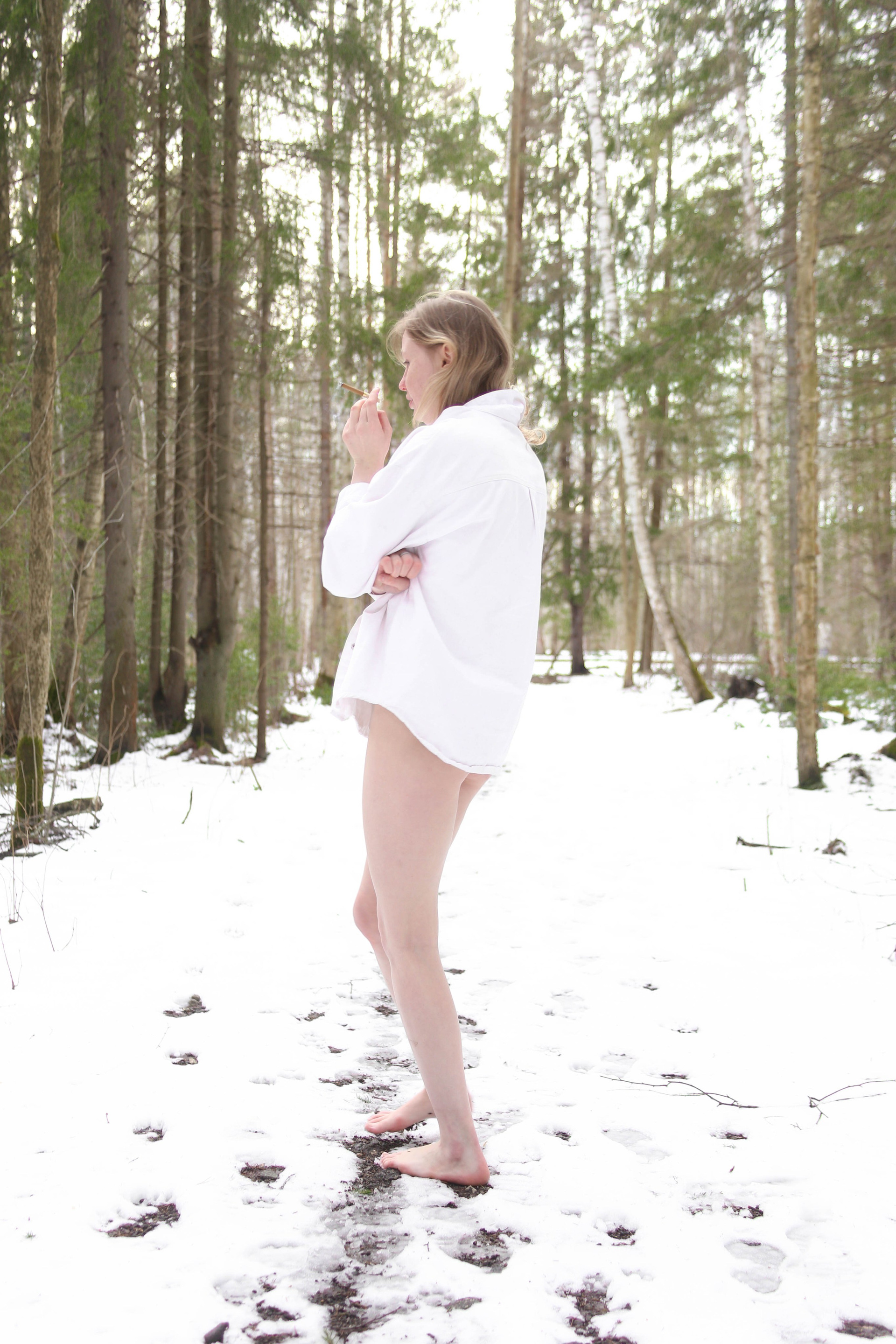 Диана на снегу босиком