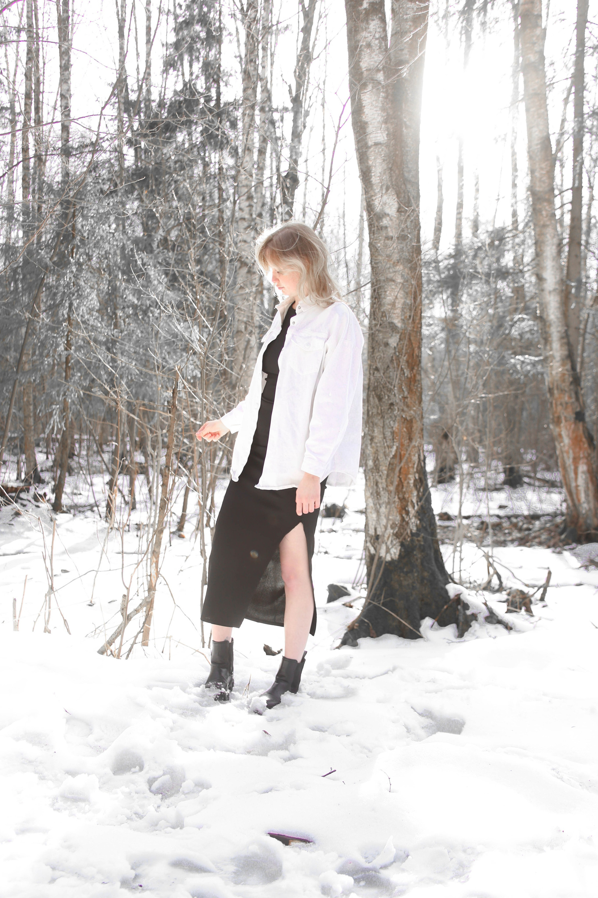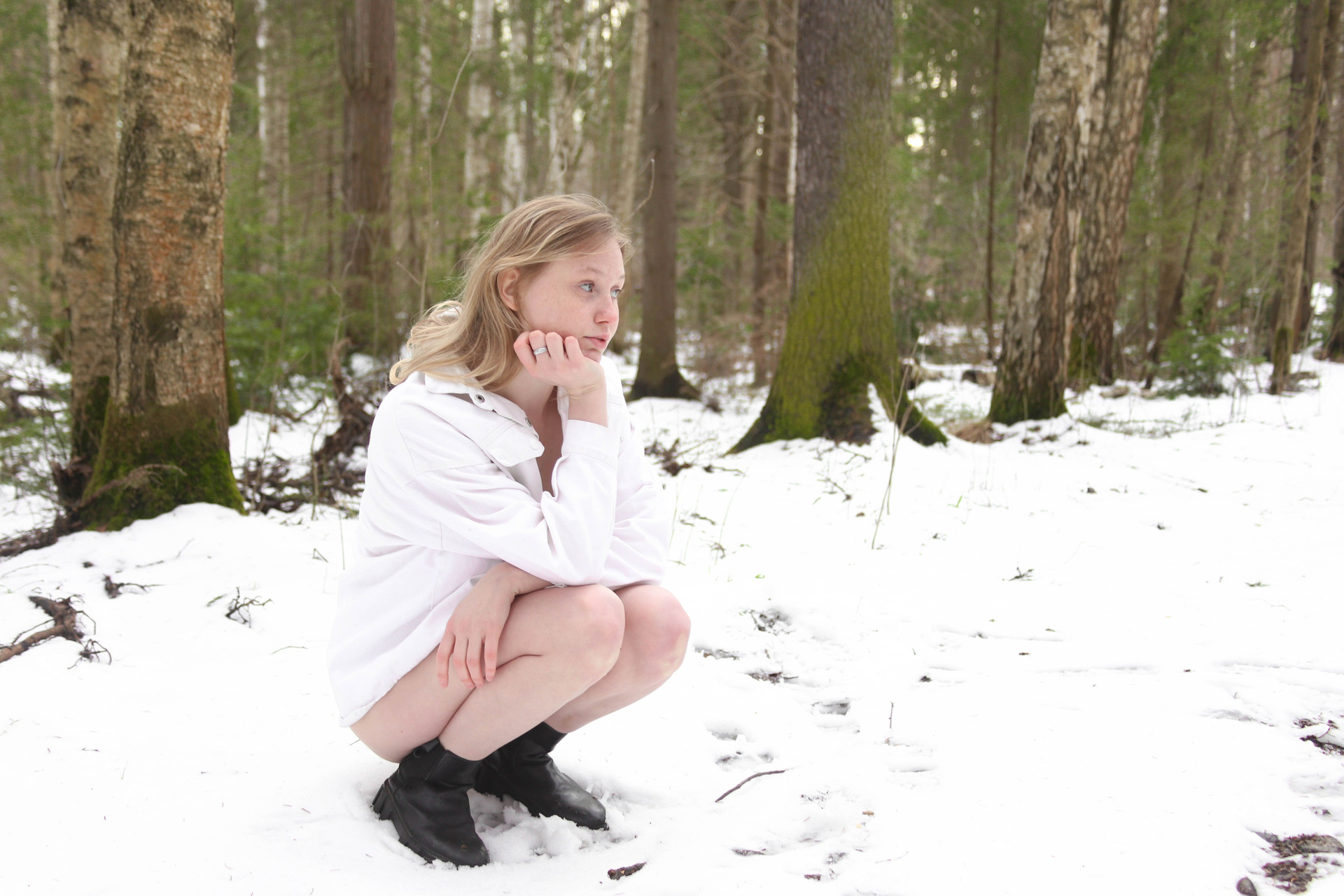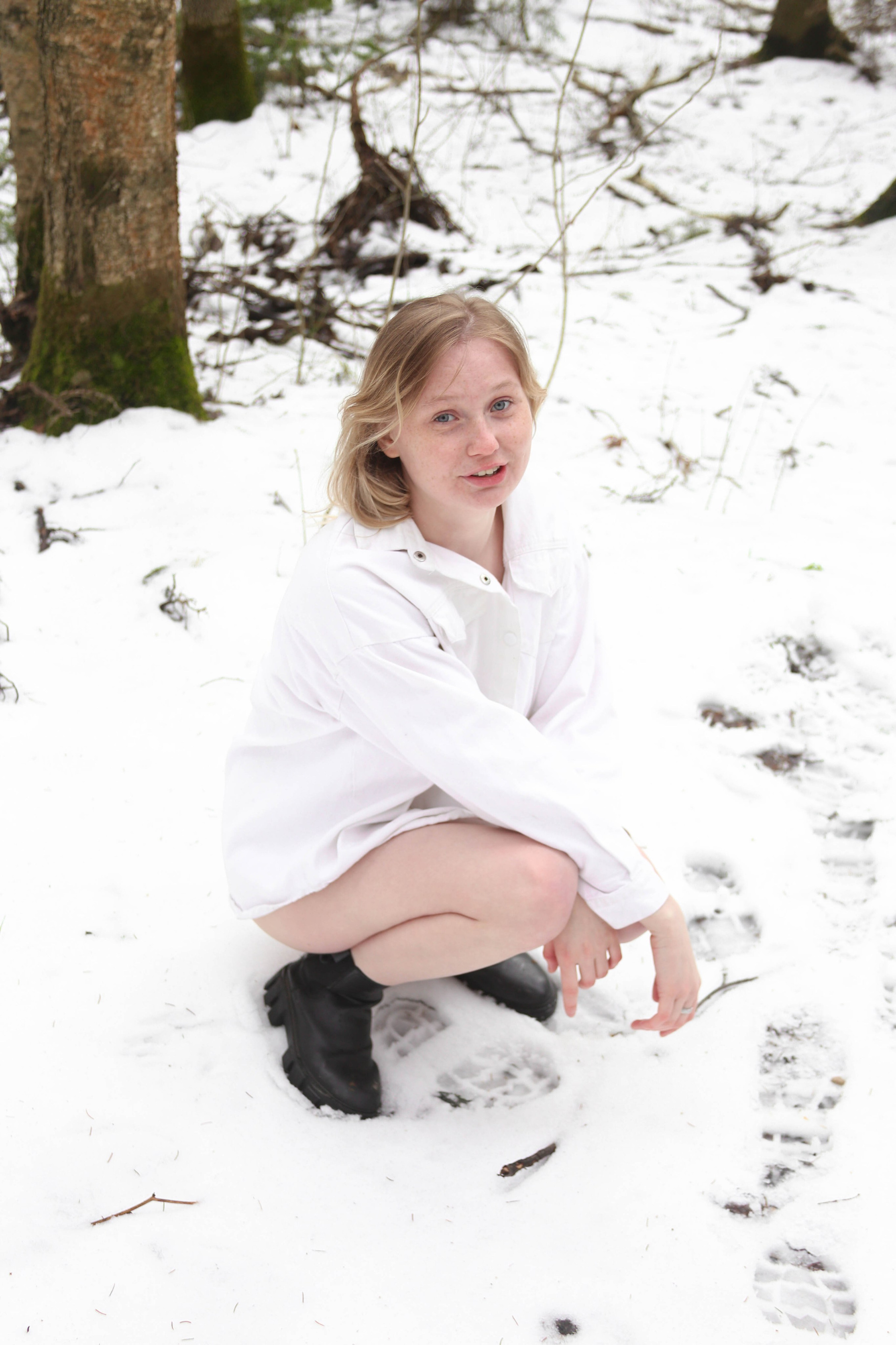Диана на снегу босиком